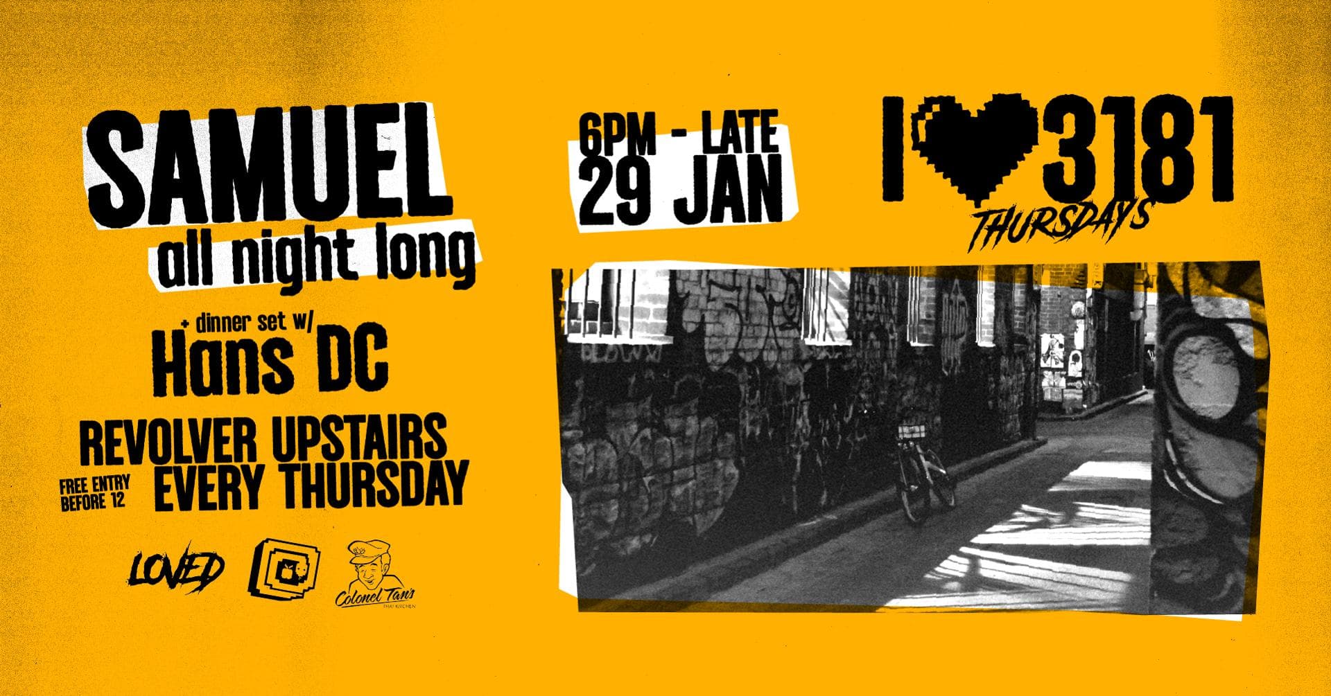 From dinner to disco, 3181 Thursdays keeps it laidback and local from 6pm with Colonel Tan’s dinner resident Hans DC, while the dance floor mischief you’d expect from the wee hours at Revolver is provided by LOVED.