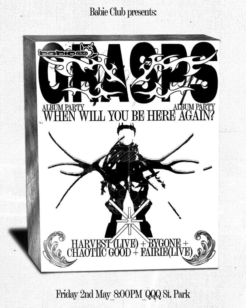 A Babie Club event celebrating the critically acclaimed sophomore album by Grasps, ๐๐๐๐ฃ ๐๐๐ก๐ก ๐๐ค๐ช ๐ฝ๐ ๐๐๐ง๐ ๐ผ๐๐๐๐ฃ?, featuring the album performed live in-full with a supporting line-up of Naarmโs finest live musicians and DJs.