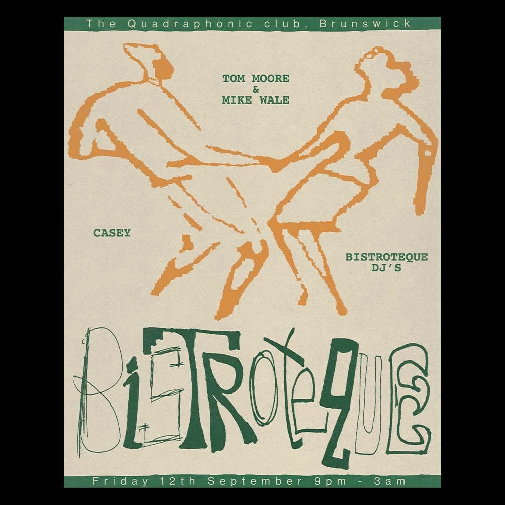 Extended sets from late night legends Casey (Skylab Radio) and Tom Moore back to back with Mike Wale (Skydiver Records), with Bistroteque line cook deejays holding down the early doors.