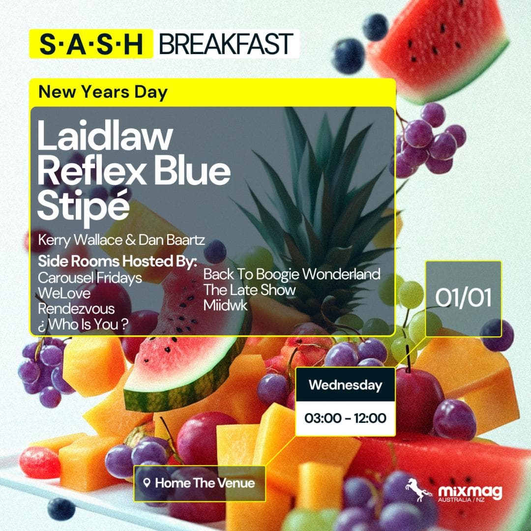 ★ Breakfast at S.A.S.H New Year's Day ★ Laidlaw // Reflex Blue // Stipé ★ Wed 1st Jan 2025 ★