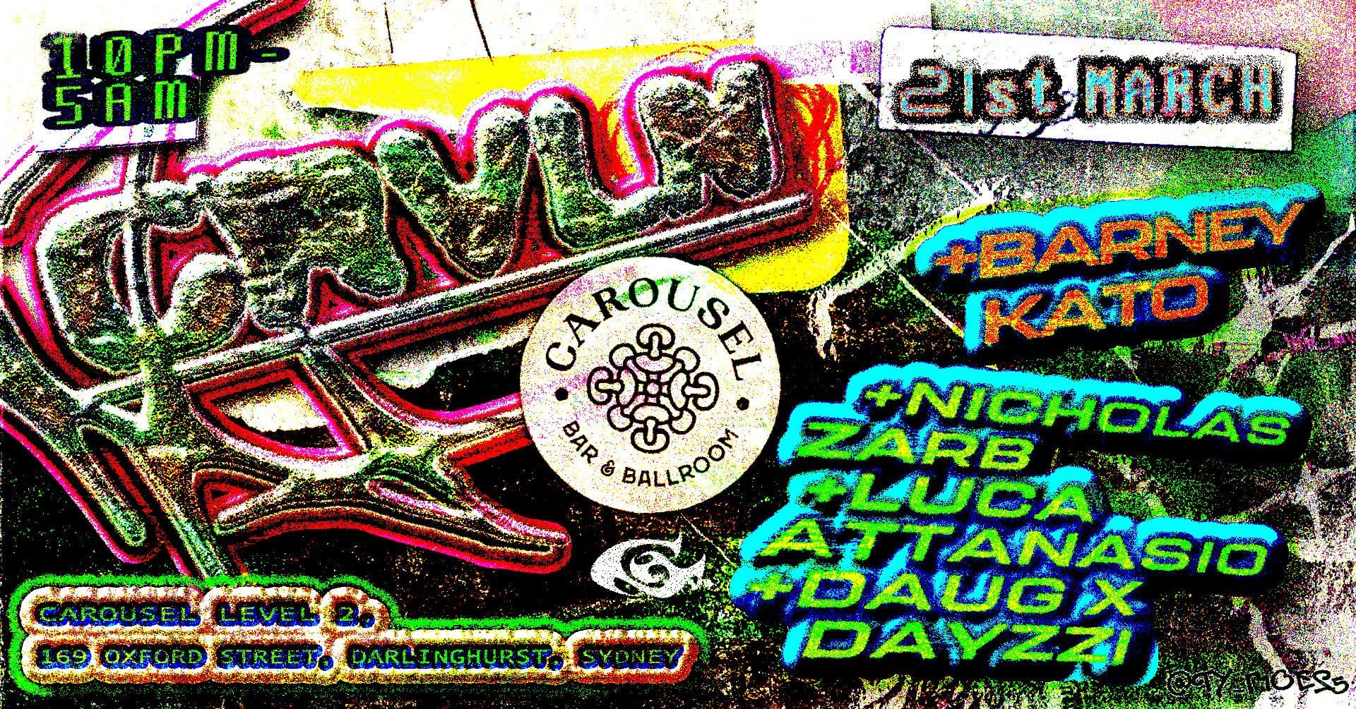 Carousel & Gravey Lane have joined forces to curate an evening that consists of all things music & arts. Renowned for their work within the clothing scene and newfound love for underground events, Gravey Lane have worked tirelessly to bring their brand to the forefront of all industries, with their recent event ft. Pureblast as a testament to their work. They’ve brought the spotlight onto the local scene this time as they’ve enlisted Sydney’s hometown hero: Barney Kato to come through to deliver a set of excellence.