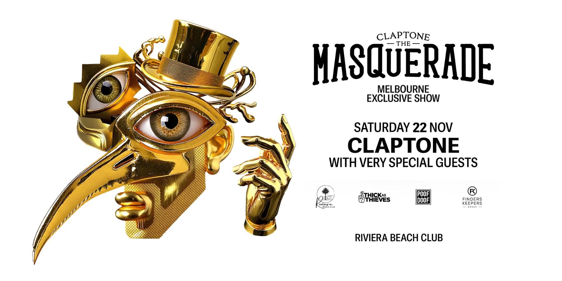 Announcement 🚨Claptone is bringing 'The Masquerade' to Melbourne for a huge exclusive show on Saturday 22nd November at Riviera Beach Club! 🎭 Voted Highest House DJ for five years in a row in DJ MAG Top 100, Claptone promises an unforgettable house experience with his internationally acclaimed Ibiza residency, The Masquerade at Riviera.