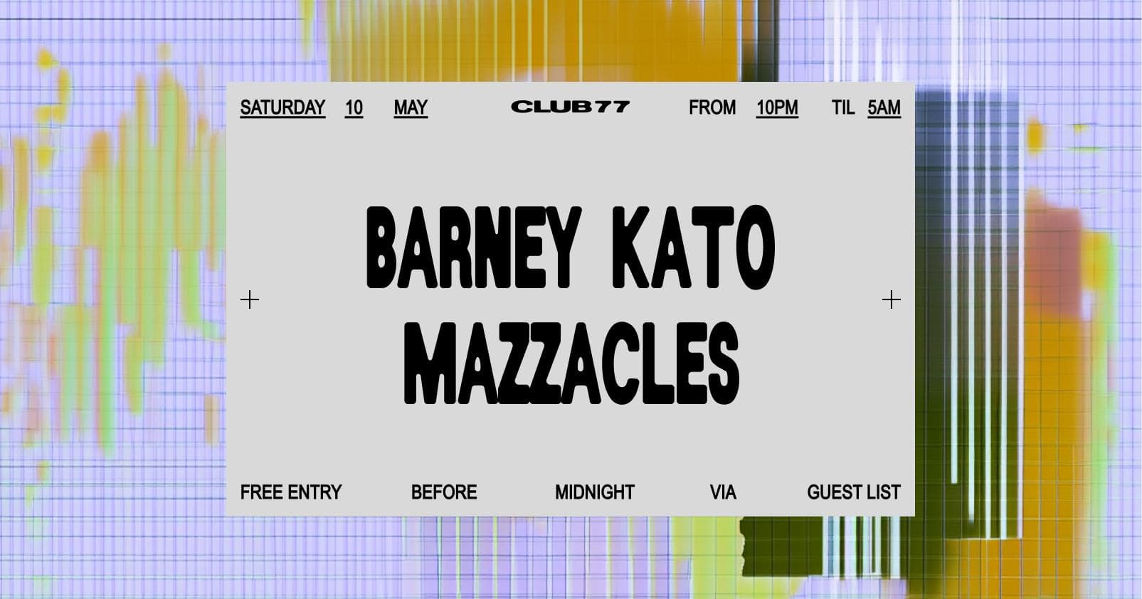 Event info & guest list here: www.club77.com.au/events/club-77-barney-kato-mazzacles