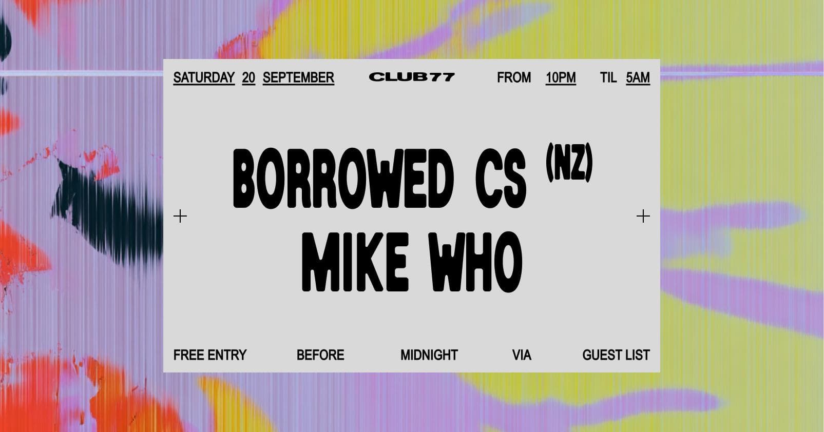 Event Info & Guest List: https://www.club77.com.au/.../club-77-borrowed-cs-mike-who