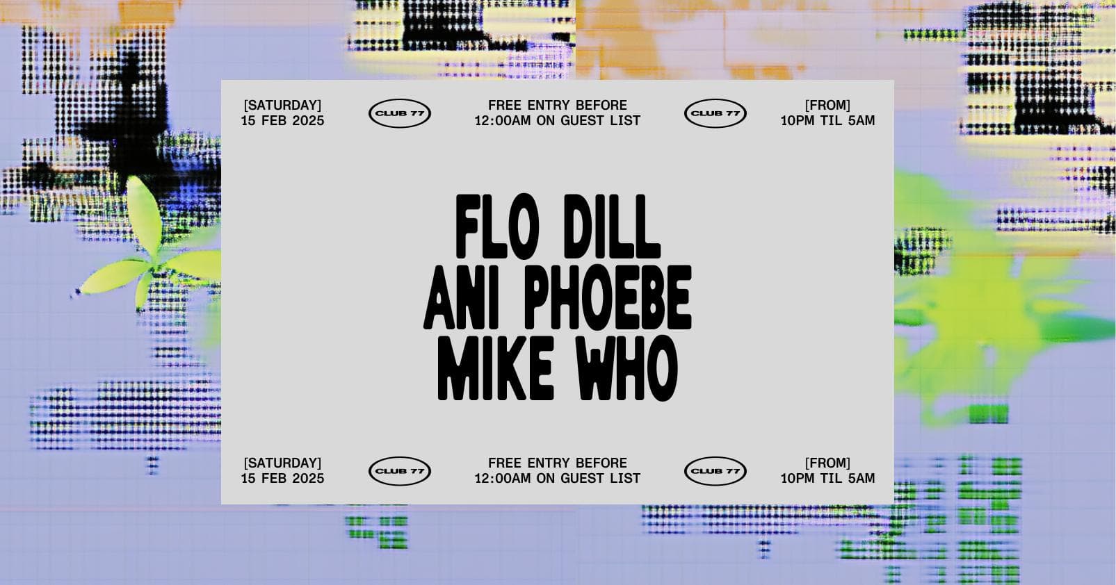 Event info & guest list here: https://www.club77.com.au/.../club-77-flo-dill-ani-phoebe...