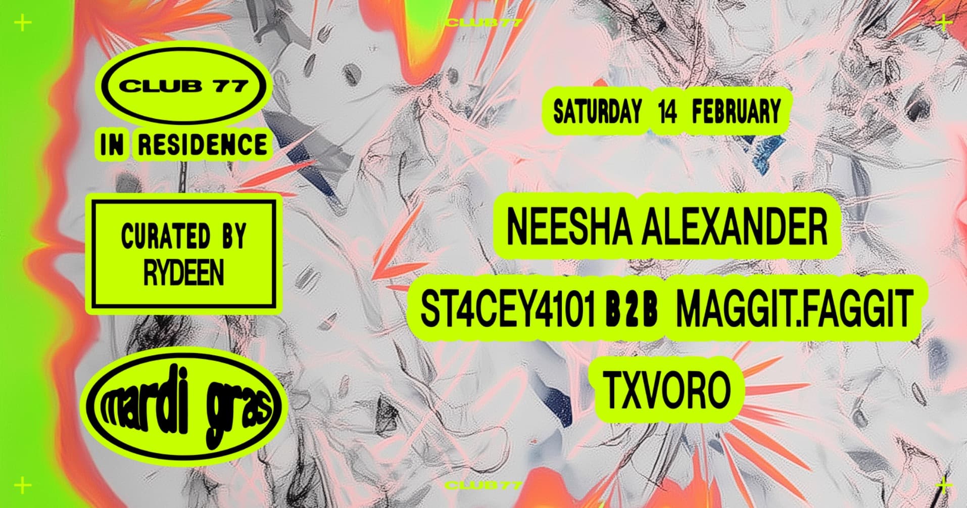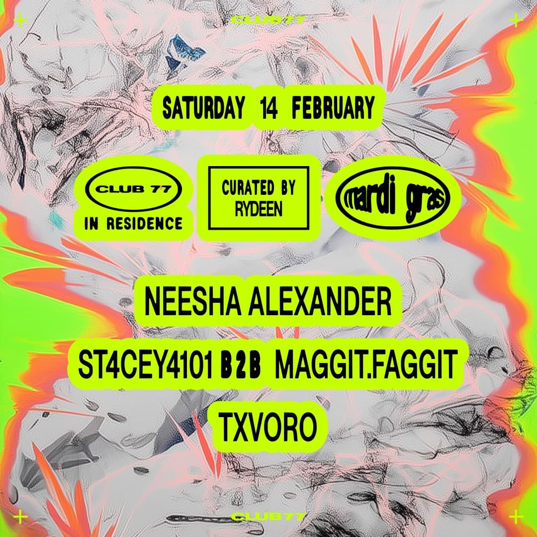 Club 77 In Residence: Curated by Rydeen: Neesha Alexander, st4cey4101 B2B maggit.faggit, Txvoro