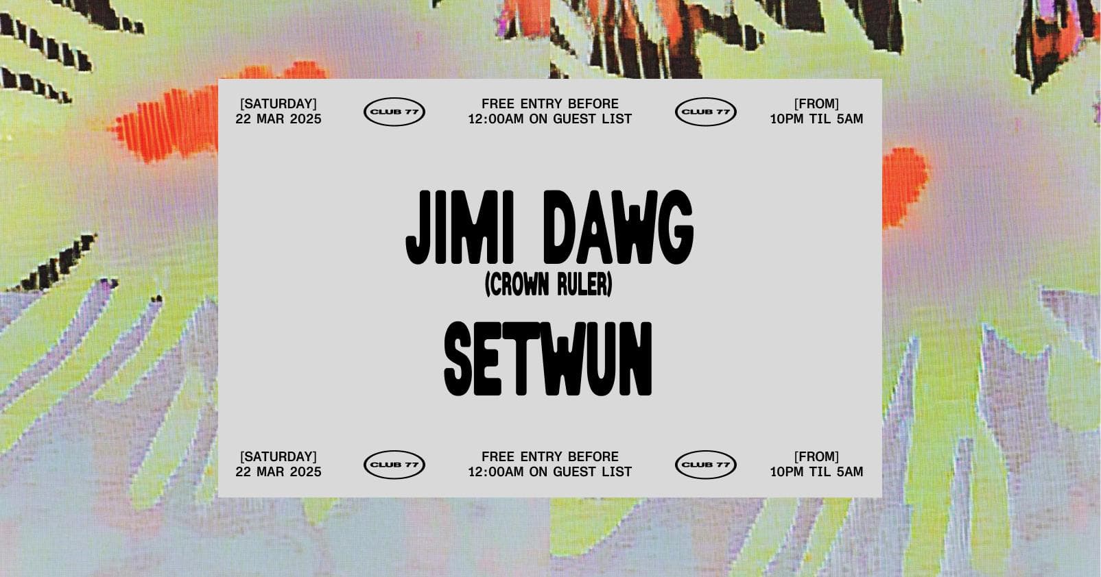 Event info & guest list here: https://www.club77.com.au/events/club-77-jimi-dawg-setwun