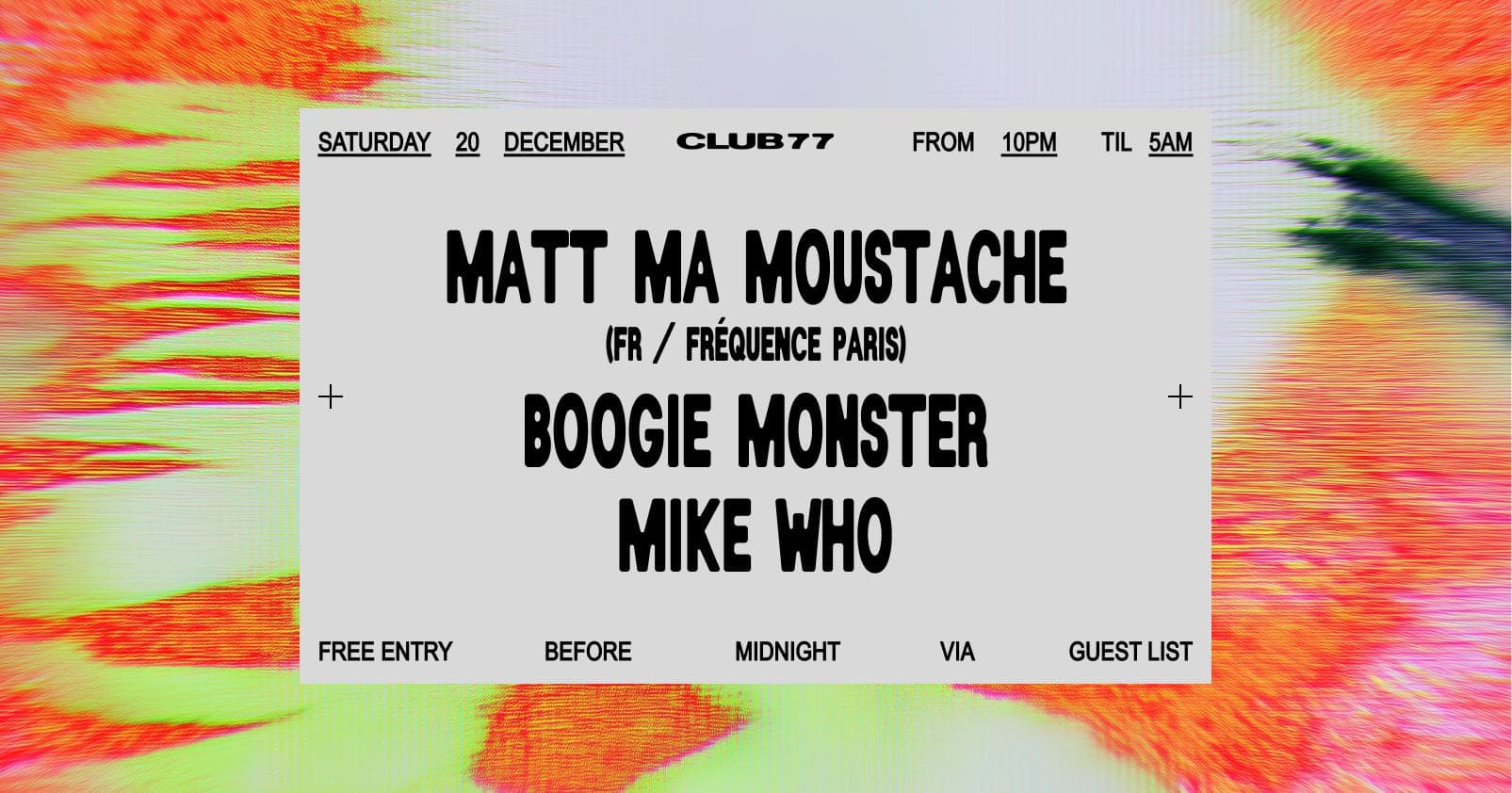 Club 77: Matt Ma Moustache (FR / Fréquence Paris), Boogie Monster, Mike Who