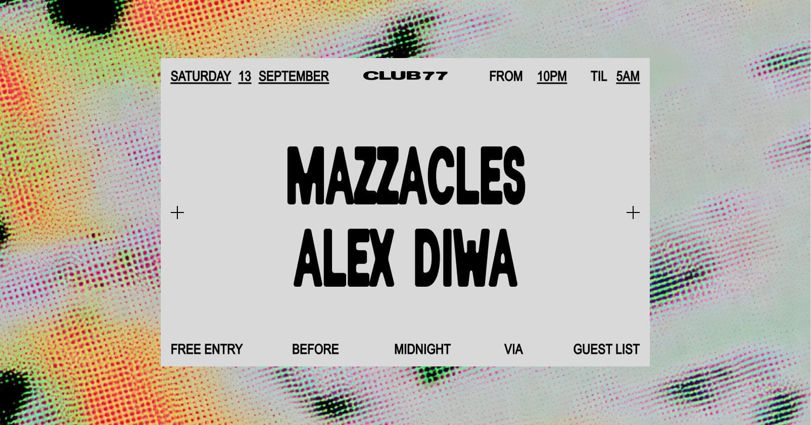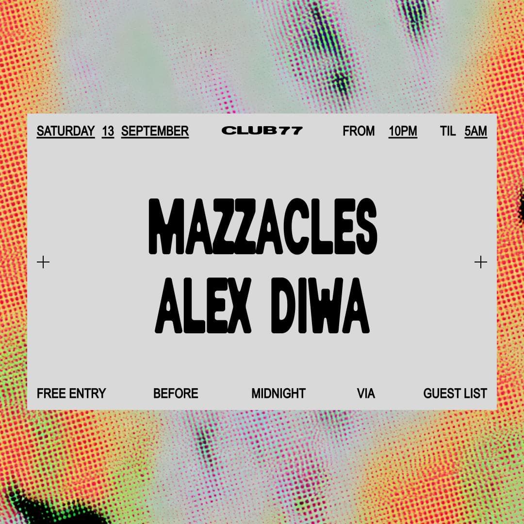 Event Info & Guest List: https://www.club77.com.au/events/club-77-mazzacles-alex-diwa