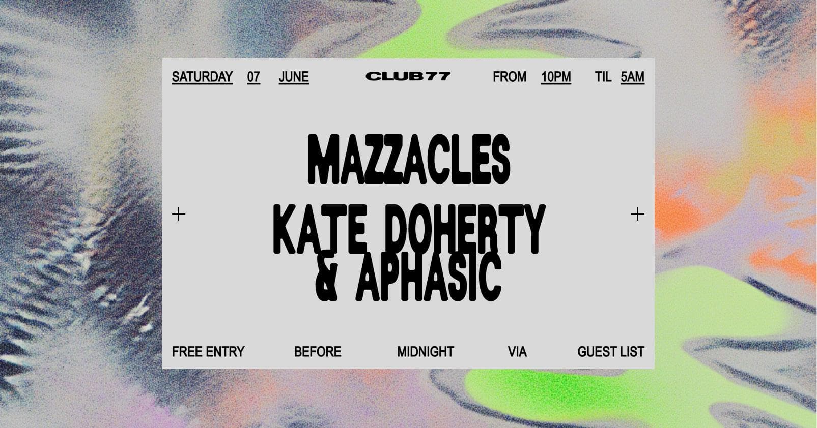 Club 77: Mazzacles, Kate Doherty & Aphasic
