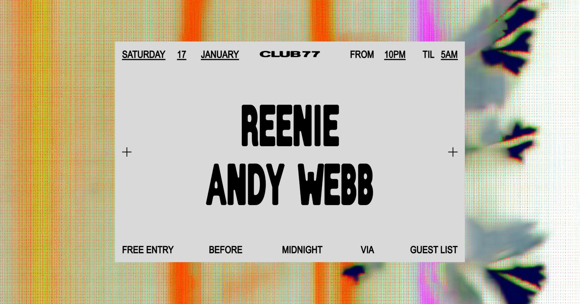 Event Info & Guest List: https://www.club77.com.au/events/club-77-reenie-andy-webb
