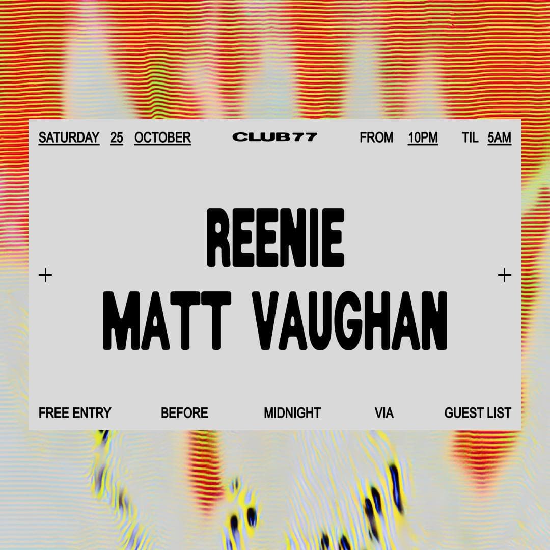 Event Info & Guest List: https://www.club77.com.au/events/club-77-reenie-matt-vaughan