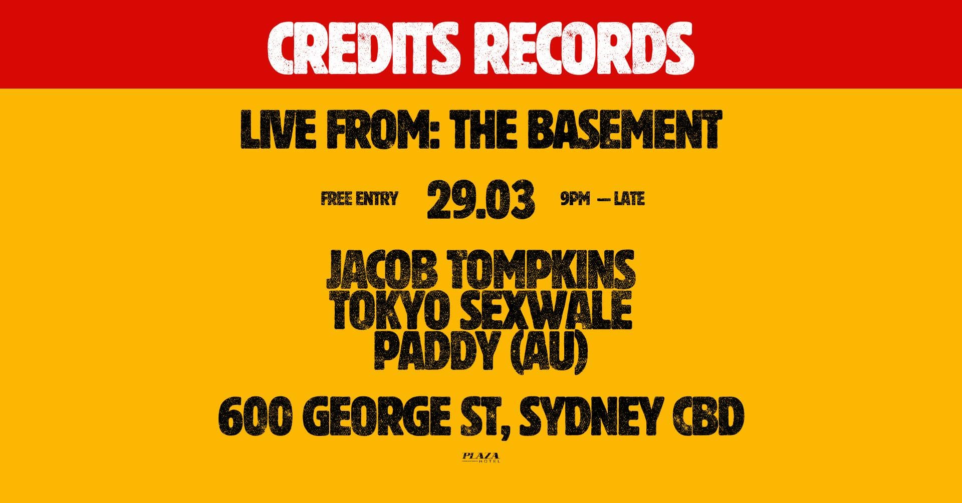 CREDITS RECORDS LIVE FROM: The Basement (Free Entry)
