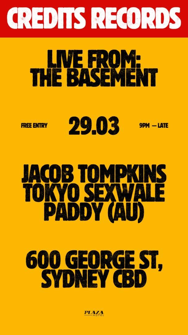 March 29th marks what is set to be a delightful evening, welcoming the Label’s first ever signing Paddy (AU), renowned Bondi brother duo Tokyo Sexwale, and Credits Records owner, Jacob Tompkins.