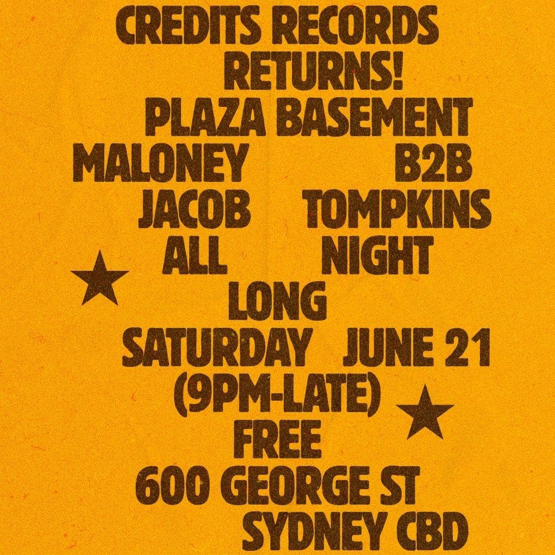 CREDITS RECORDS RETURNS! The Plaza Basment - MALONEY B2B JACOB TOMPKINS (All Night Long) [FREE EVENT]