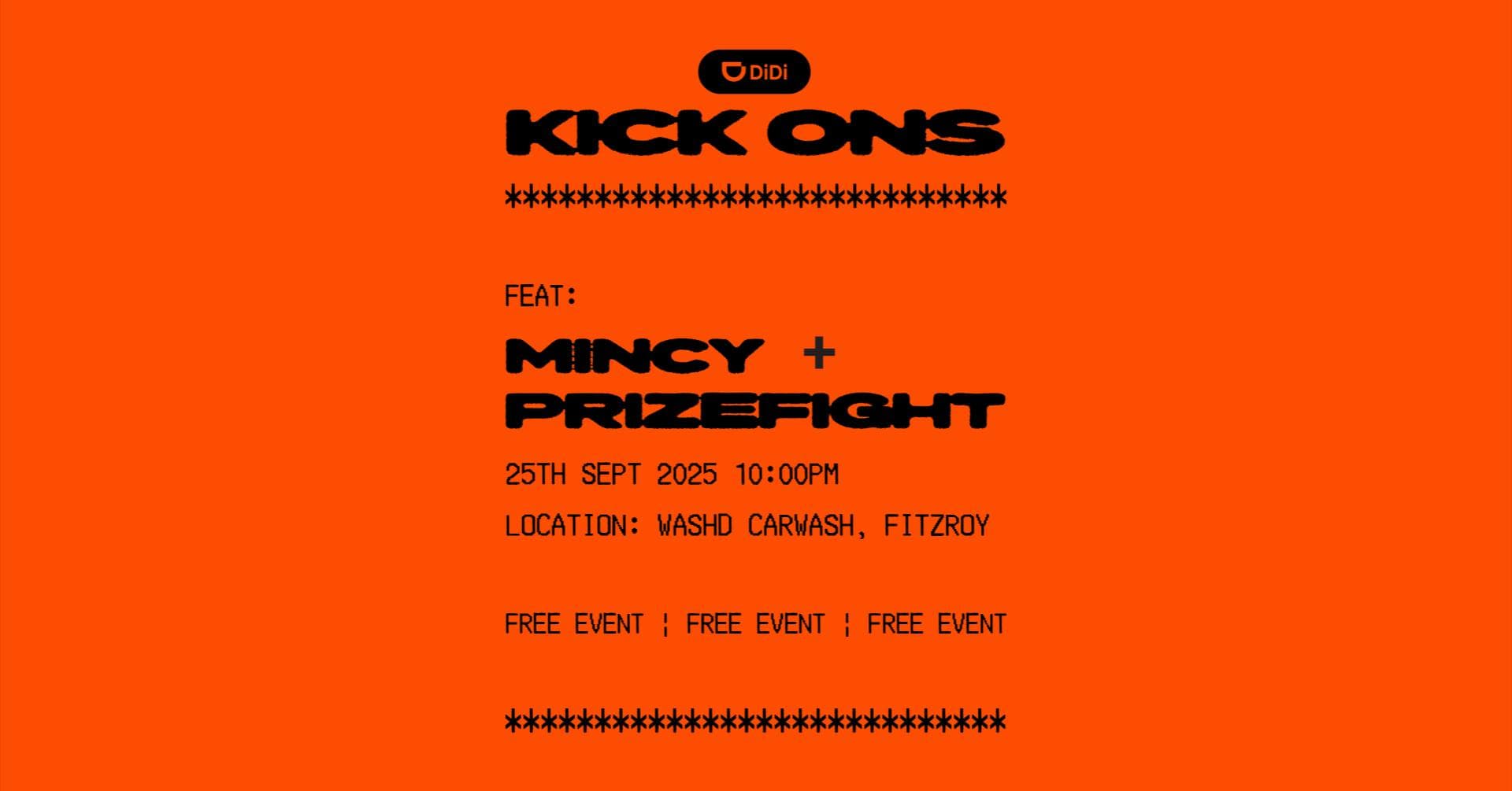 DiDi Kick Ons ft. Prizefight & Mincy - Pop-up event in Washd Carwash Fitzroy