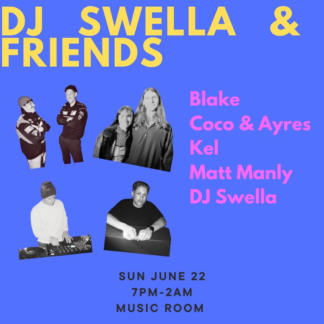 DJ Swella & Friends is back! Got a great crew on the lineup ready to lay it down in the wonderful Music Room. See you there.