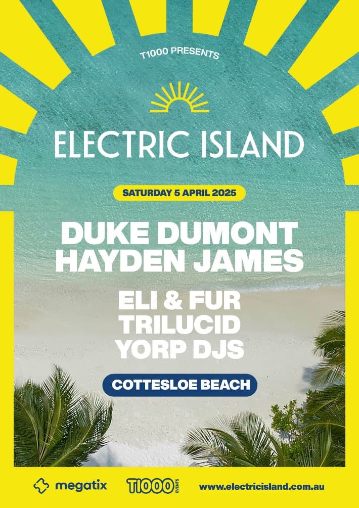 We got you, Australia: Boutique electronic music festival Electric Island makes its grand return in 2025, alongside the debut of Electric Warehouse, co-headlined by Duke Dumont and Hayden James across two weekends in April. Four unbeatable locations. Two distinct event experiences. Four days of dance.