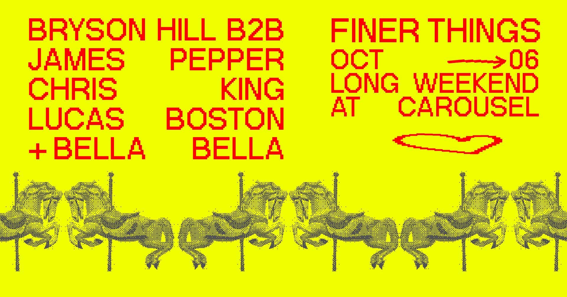 A night of music and dance, featuring James Pepper b2b Bryson Hill, Lucas Boston, Chris King, and Bella Bella.
