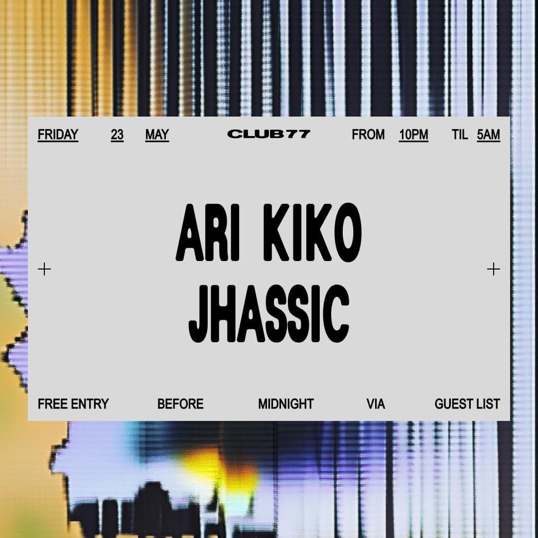 Event info & guest list here: www.club77.com.au/events/fridays-at-77-ari-kiko-jhassic