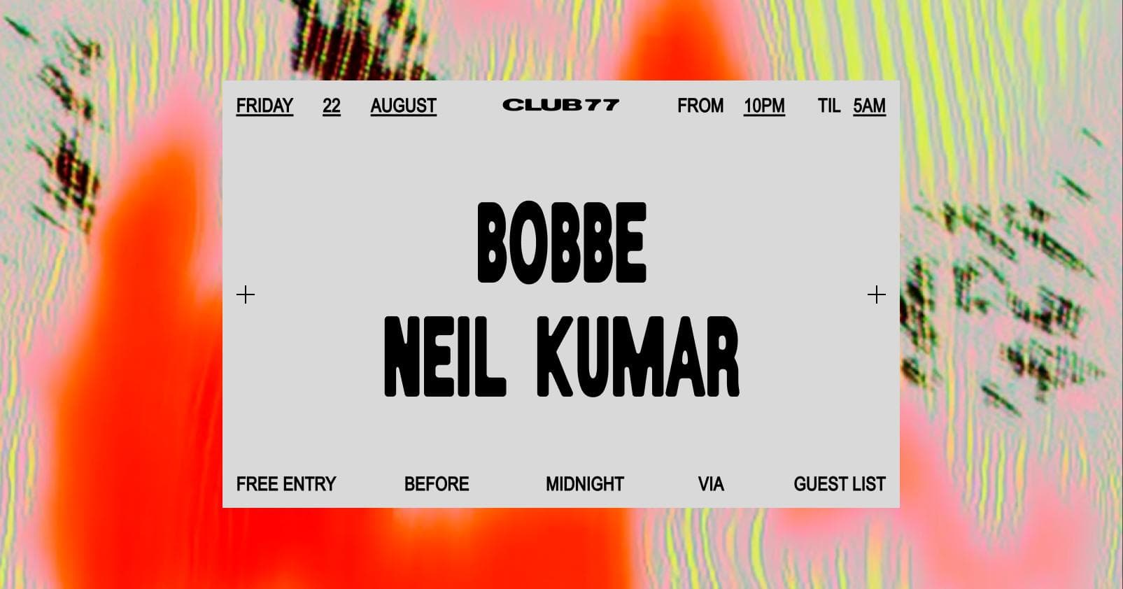 Event Info & Guest List: https://www.club77.com.au/.../fridays-at-77-bobbe-neil-kumar