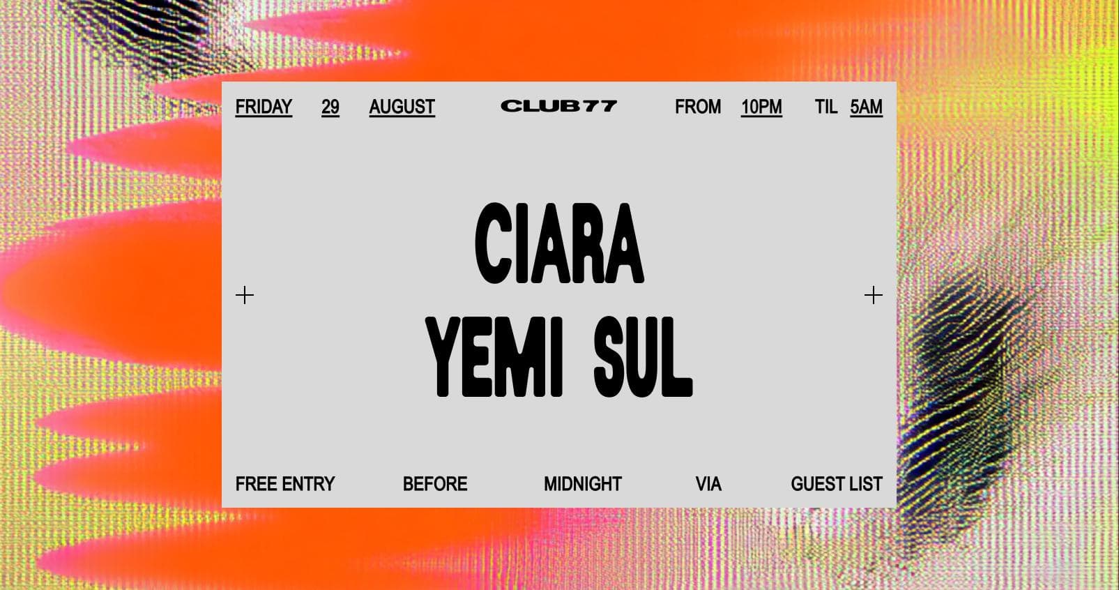Event Info & Guest List: https://www.club77.com.au/.../fridays-at-77-ciara-yemi-sul