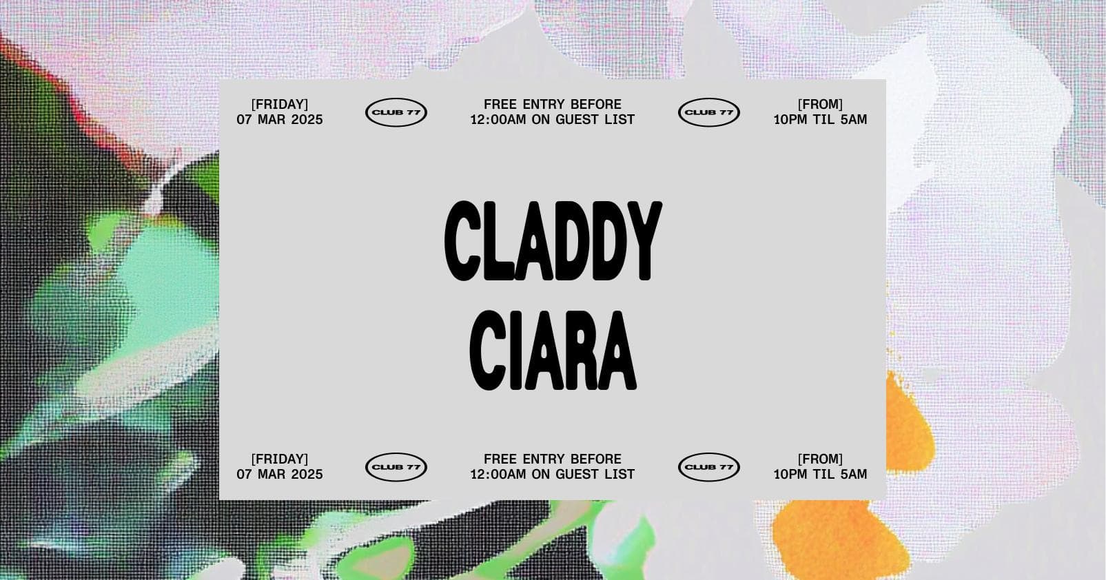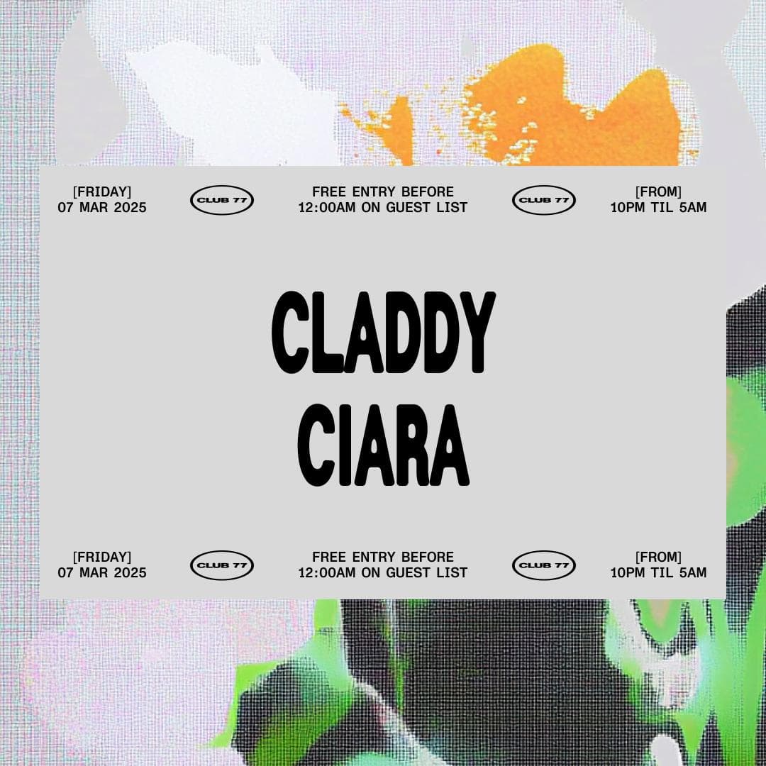 Event info & guest list here: https://www.club77.com.au/events/fridays-at-77-claddy-ciara