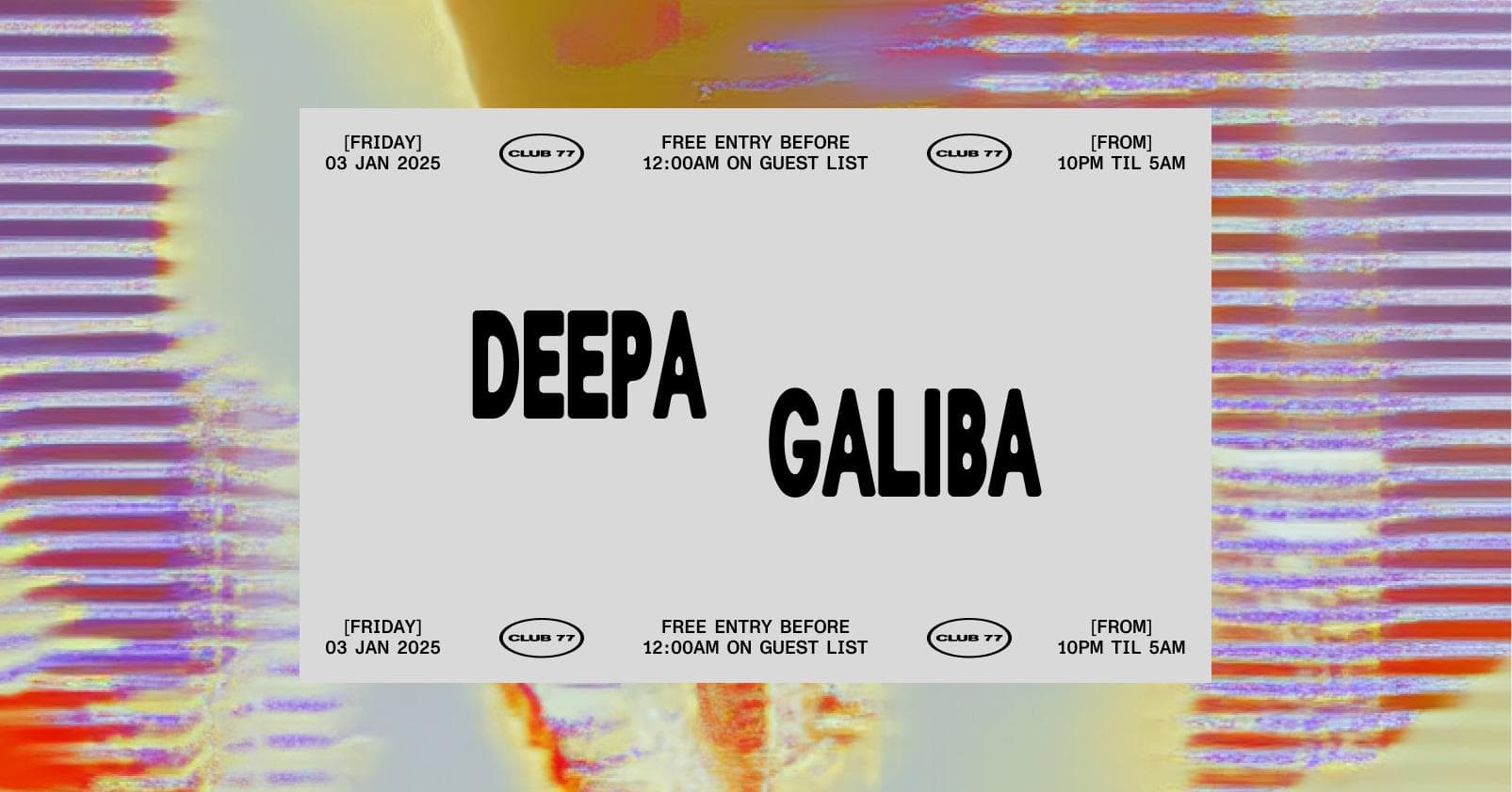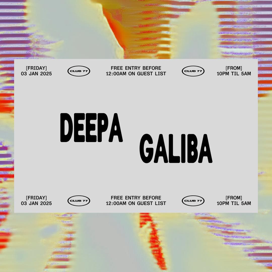 Event info & guest list here: https://www.club77.com.au/events/fridays-at-77-deepa-galiba