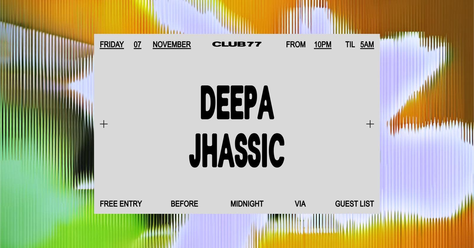Event Info & Guest List: https://www.club77.com.au/events/fridays-at-77-deepa-jhassic