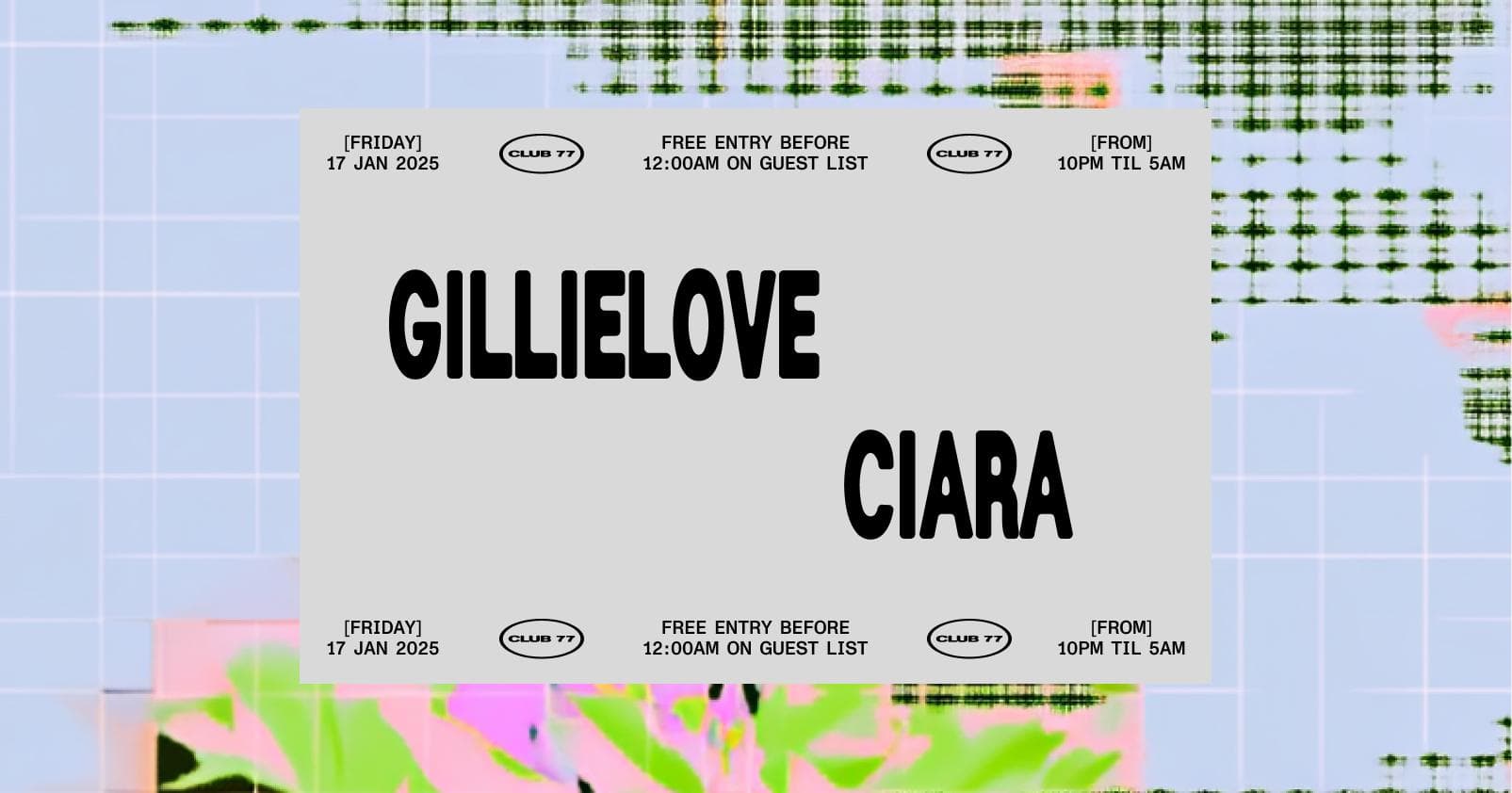 Event info & guest list here: https://www.club77.com.au/.../fridays-at-77-ciara-gillielove