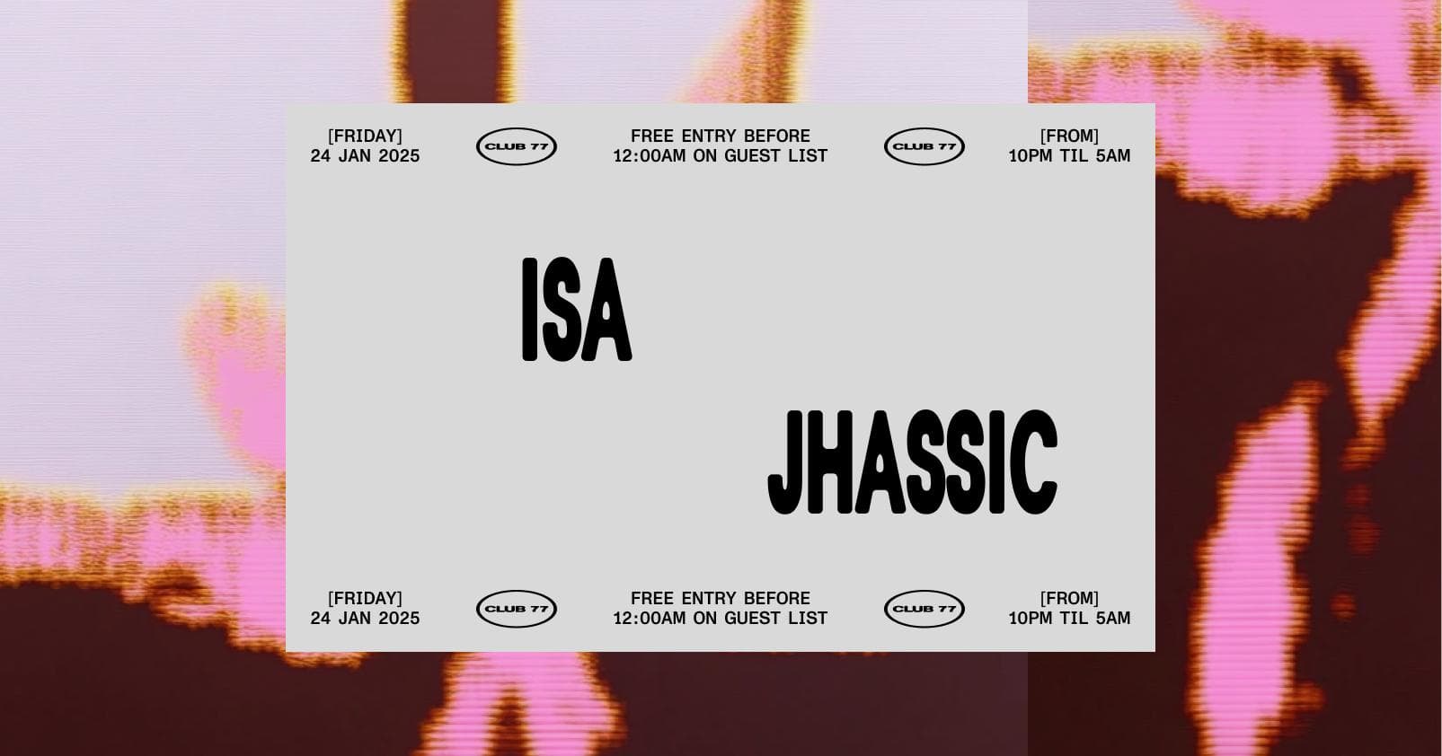 Event info & guest list here: https://www.club77.com.au/events/fridays-at-77-isa-jhassic