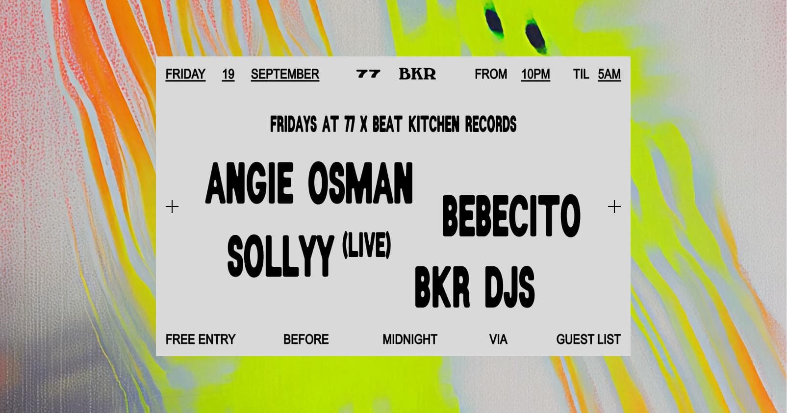 Fridays at 77 x Beat Kitchen Records: Angie Osman, Bebecito, Sollyy (Live), BKR DJs