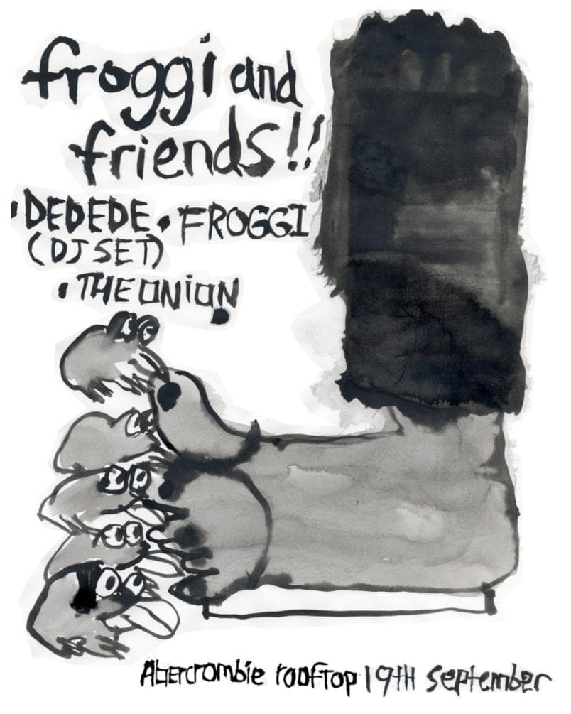 Joining Froggi are her very special guests and friends, Dedede and The Onion. A guaranteed genre buffet, eclectic and unexpected. Rumour has it, there will be special guest appearances throughout the night, so jump in early, stay til late. Don’t sleep!