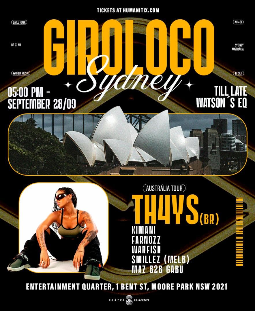 For the first time, GIROLOCO brings the real energy of Baile Funk to Australia! Straight from Brazil, there's no one better than @th4ys to open this journey. Accompanied by other great local DJs, she will bring the real and fresh Baile Funk energy to Downunder.
