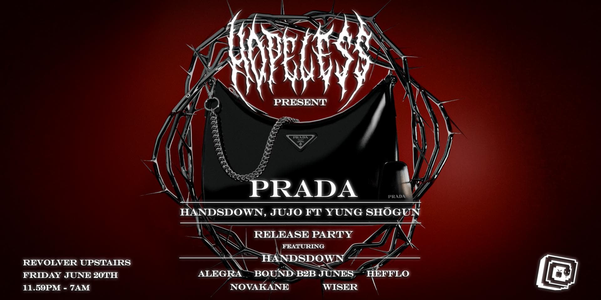 Join us Friday June 20th at Revolver Upstairs for the inaugural Hopeless label party and launch event for “Prada”, our latest release from Handsdown & Jujo ft Yung Shōgun ----
