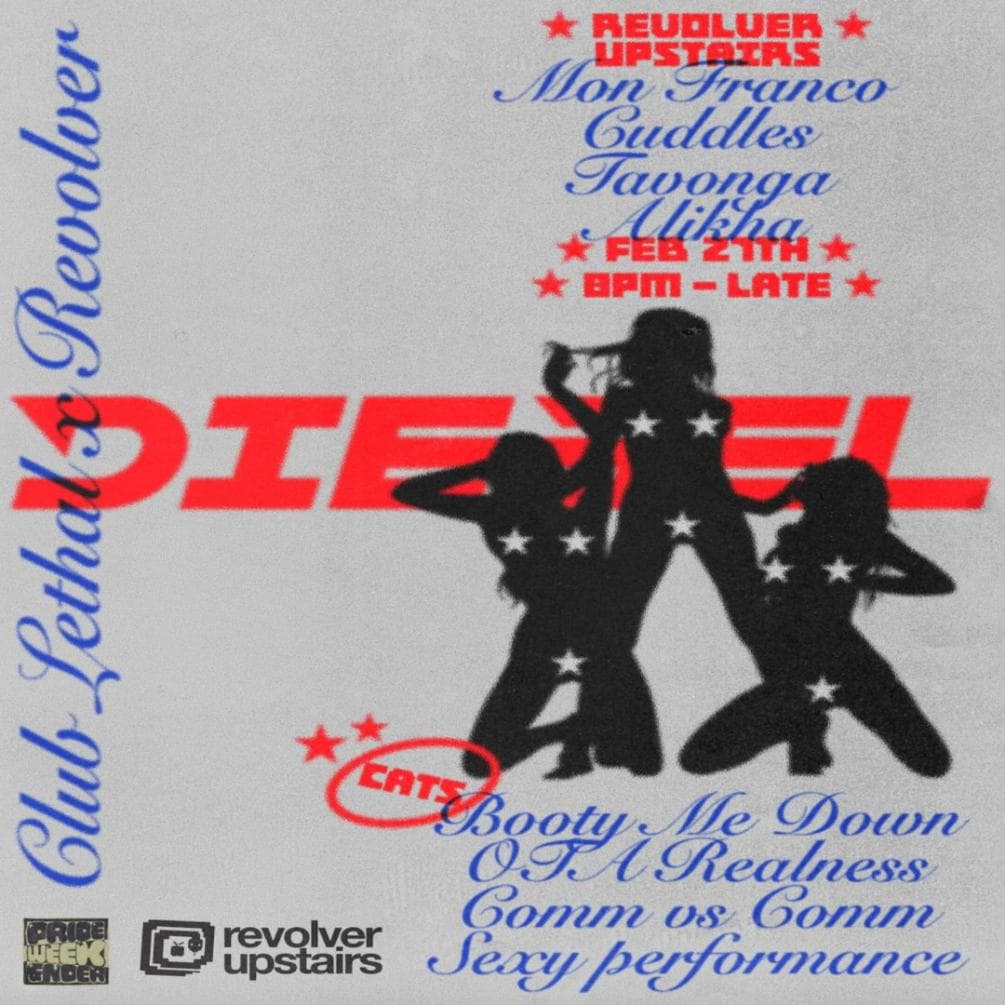 We’re GASSED UP for another DIESEL TAKEOVAH, and this time taking over Revolver Upstairs (aka “REVS”) for PRIDE WEEKENDER.
