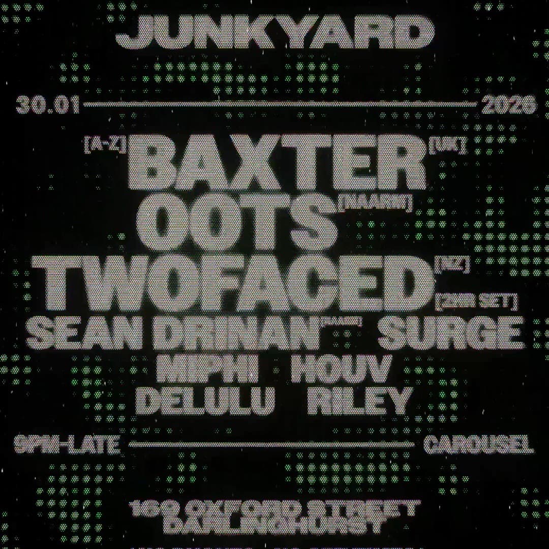 JUNKYARD PRESENTS: BAXTER (UK), OOTS (NAARM) & TWOFACED (NZ)