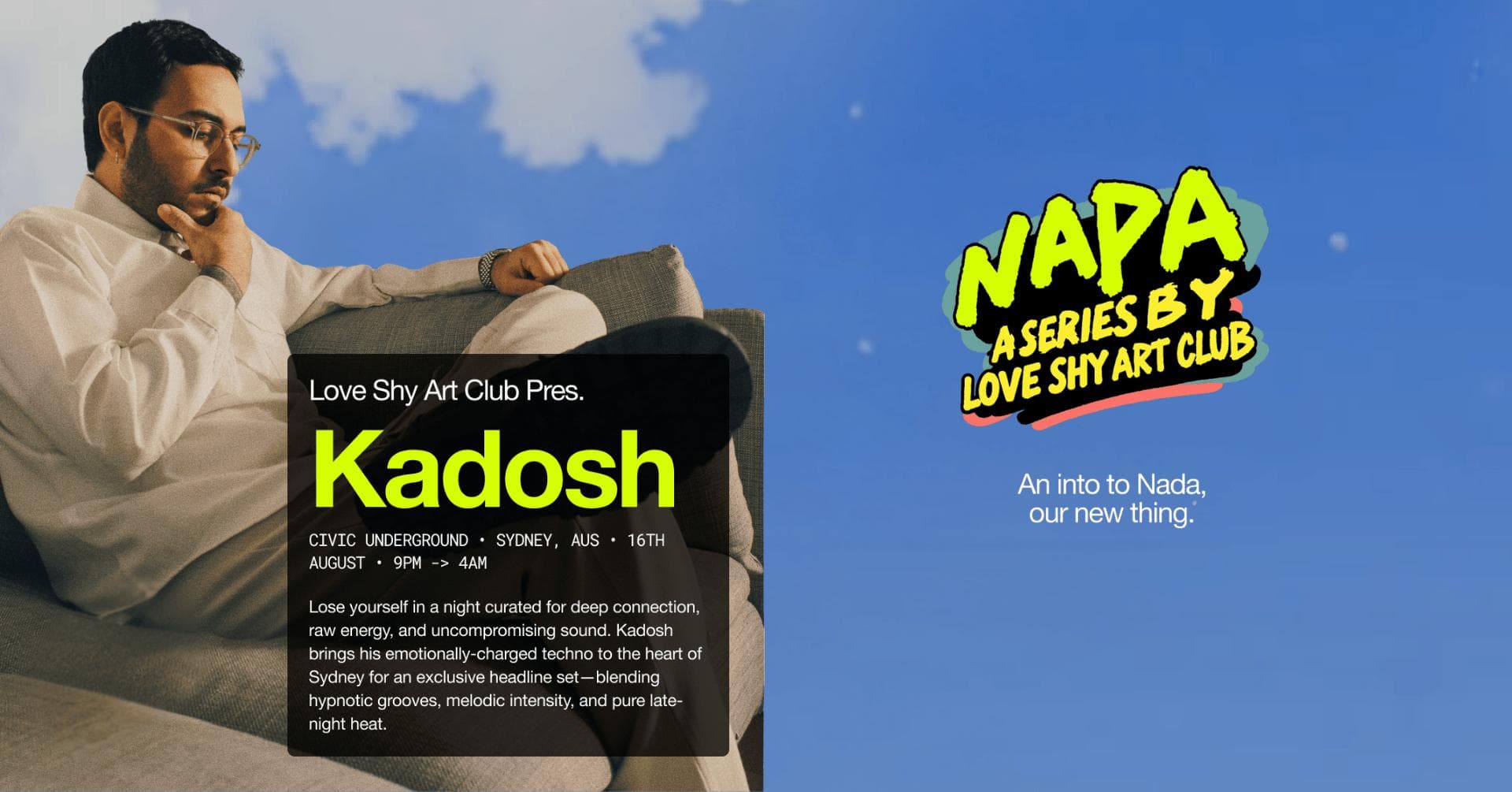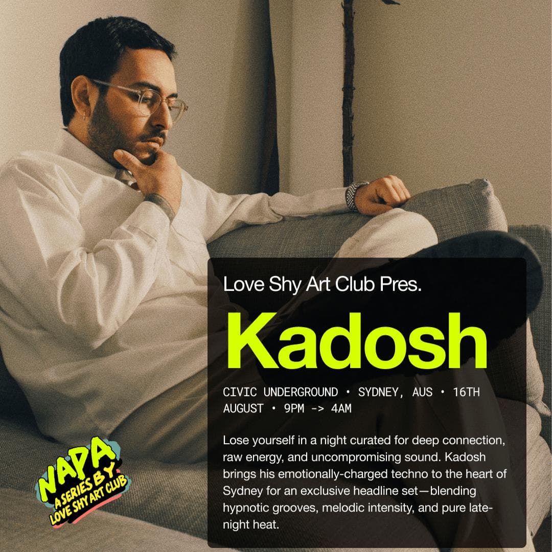 Lose yourself in a night curated for deep connection raw energy and uncompromising sound. Kadosh brings his emotionally-charged techno to the heart of Sydney for an exclusive headline set—blending hypnotic grooves melodic intensity and pure late-night heat. Expect a dark immersive dance floor a room full of heads who came to feel and a set that builds from subtle pulse to euphoric release. Nada isn’t about who’s watching—it’s about what you feel. Come ready.