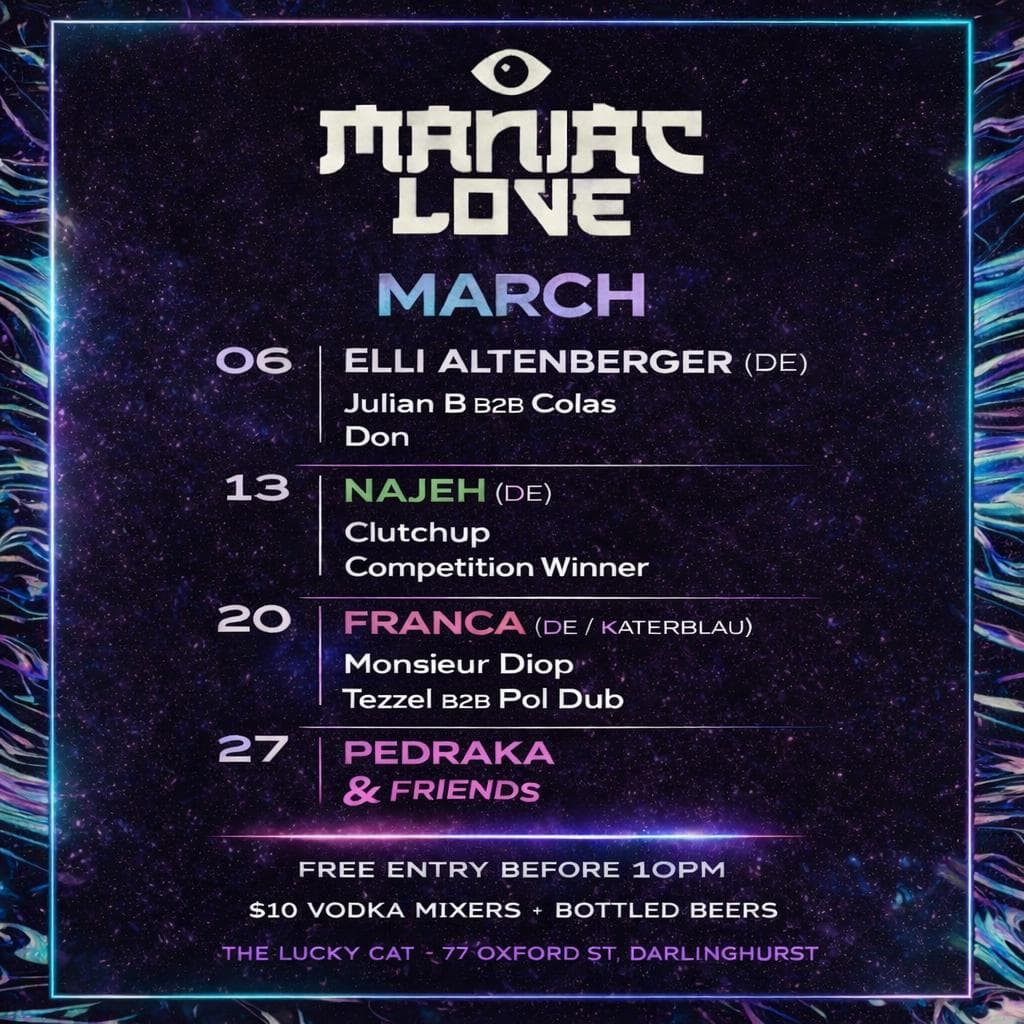 Elli Alternberger takes over the Lucky Cat on the 6th of March for her exclusive Sydney show! Cattch her then supported by Julian B b2b Colas (imports from Bali) and Don warming up!