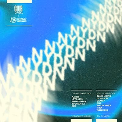 Join us for the first sesh of the year, with Club Well curating an agency line-up on the Stage, and a cross-selection of Revolver residents and special guests in the Cage until midday Thursday. Door sales only xx.