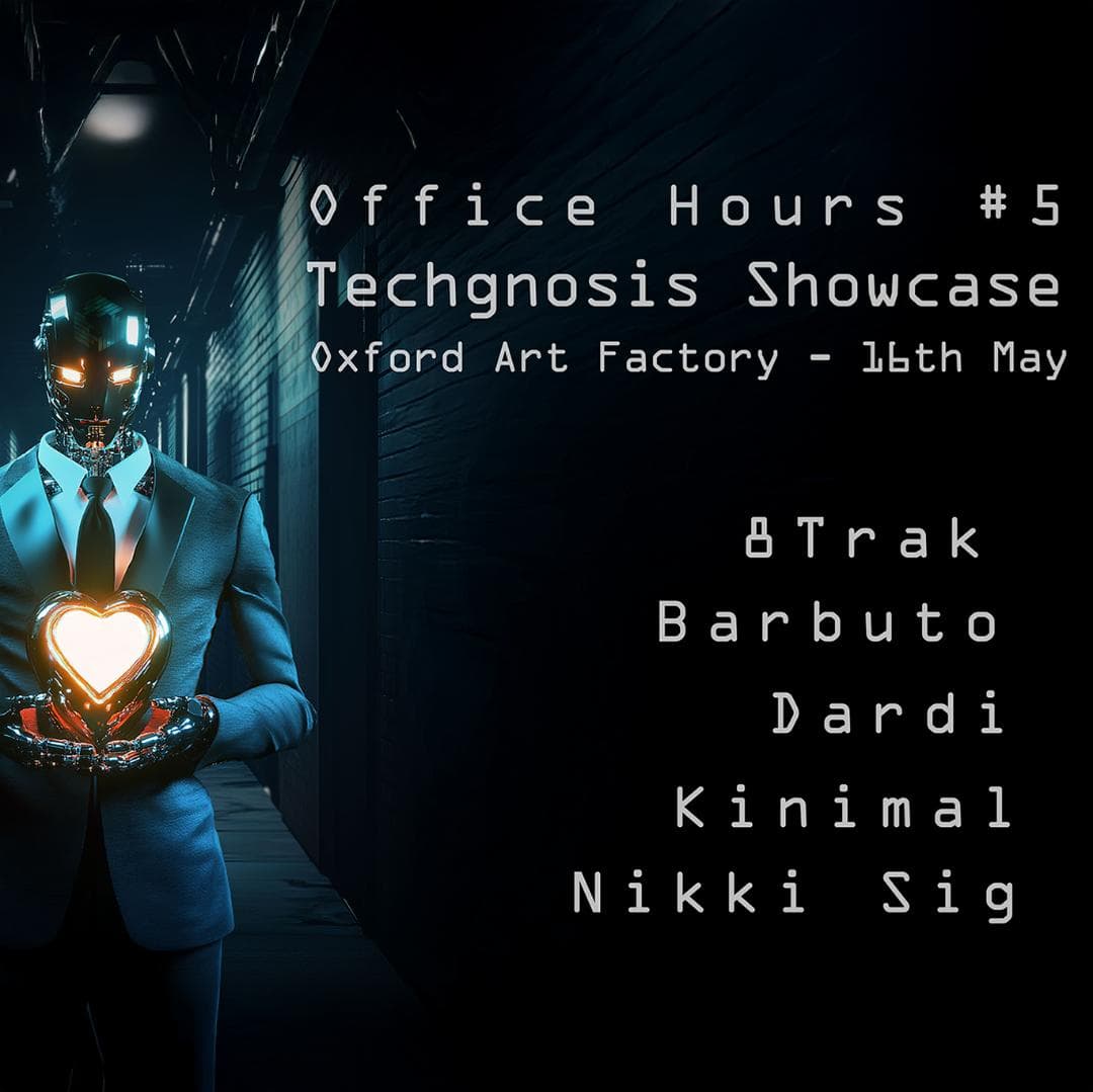 Office Hours returns to hack the system with its fifth underground techno infiltration, featuring a full Techgnosis Records takeover at Oxford Art Factory.