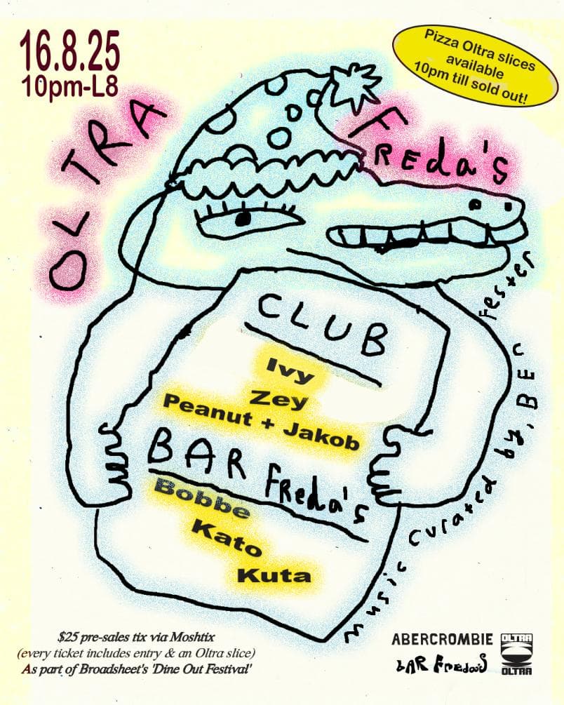 $25 pre-sales tix via Moshtix (every ticket includes entry & an Oltra slice)