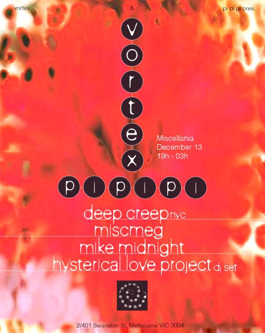 pi pi pi x Vortex pres. Deep Creep (US), Mike Midnight, Miscmeg & Hysterical Love Project (dj)