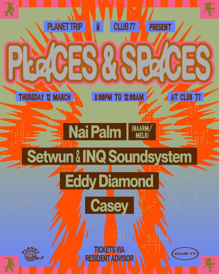 Places & Spaces: Nai Palm (Naarm/Melb), Setwun & INQ Soundsystem, Eddy Diamond, Casey