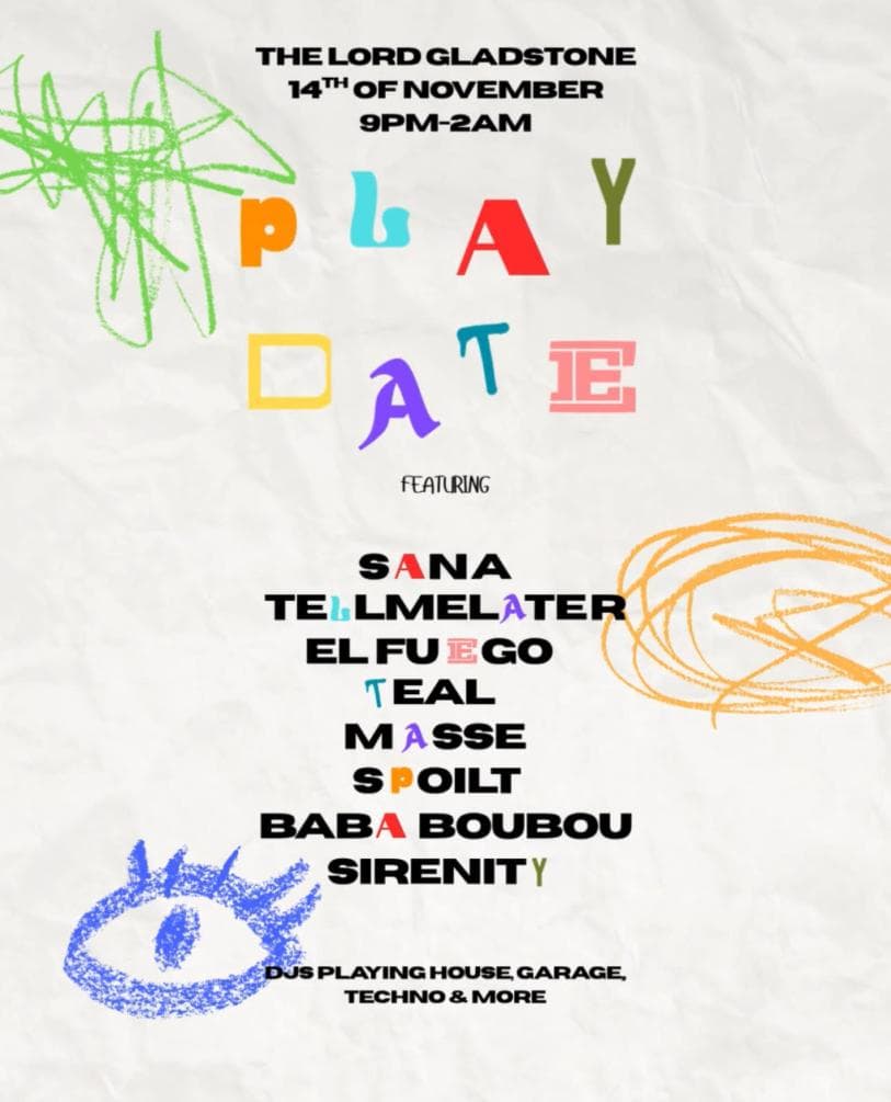PLAYDATE is a genre-fluid event featuring sets from DJs playing house, techno, UKG, hard dance and everything in between.