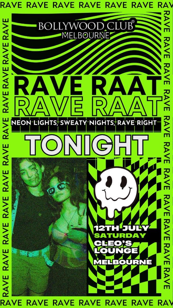 Immerse yourself in a high-energy rave party where pulsating neon lights meet the infectious grooves of Indian music! This electrifying night blends Bollywood hits, Punjabi bangers, and electronic remixes to create an unforgettable fusion of sound and color.✨ Glow-in-the-dark decor, UV-reactive visuals, and dazzling lasers transform the venue into a psychedelic wonderland.