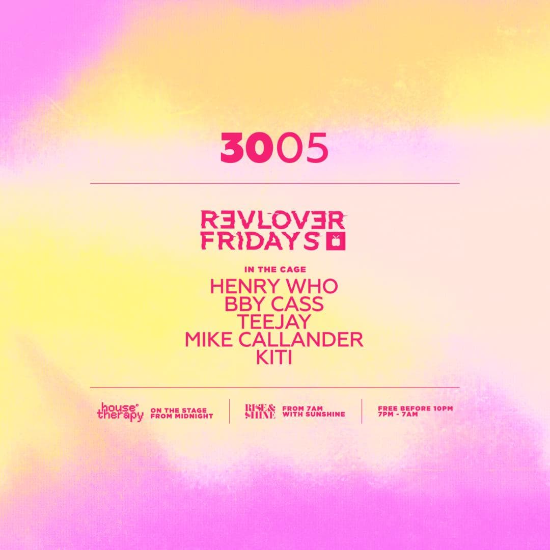 Helmed by Mike Callander, Revolver Fridays kicks the weekend into gear with a healthy weekly dose of haus and techno in the Back Bar from 10pm until 7am. With Henry Who providing the Colonel Tan’s warm-up soundtrack from 7pm, and Sunshine from 7am Saturday.