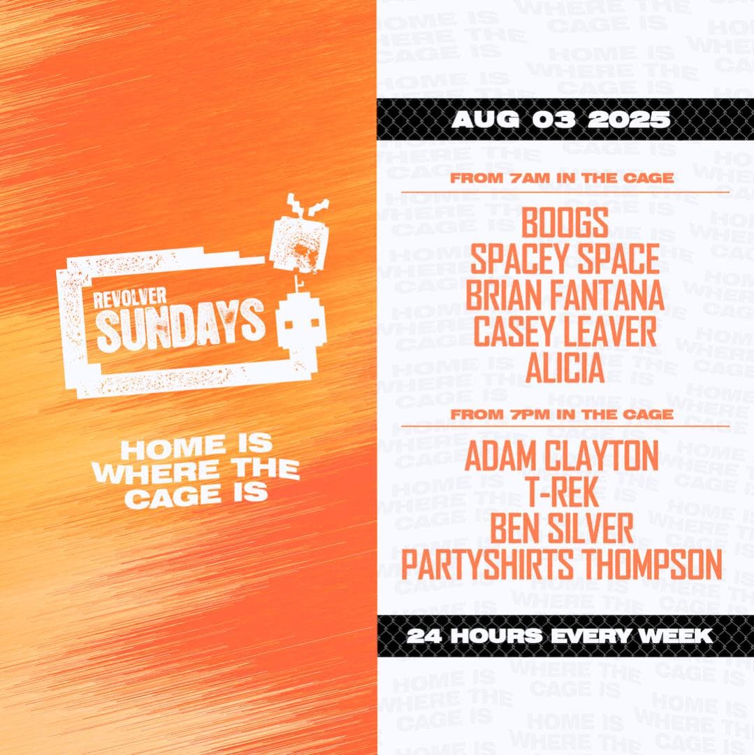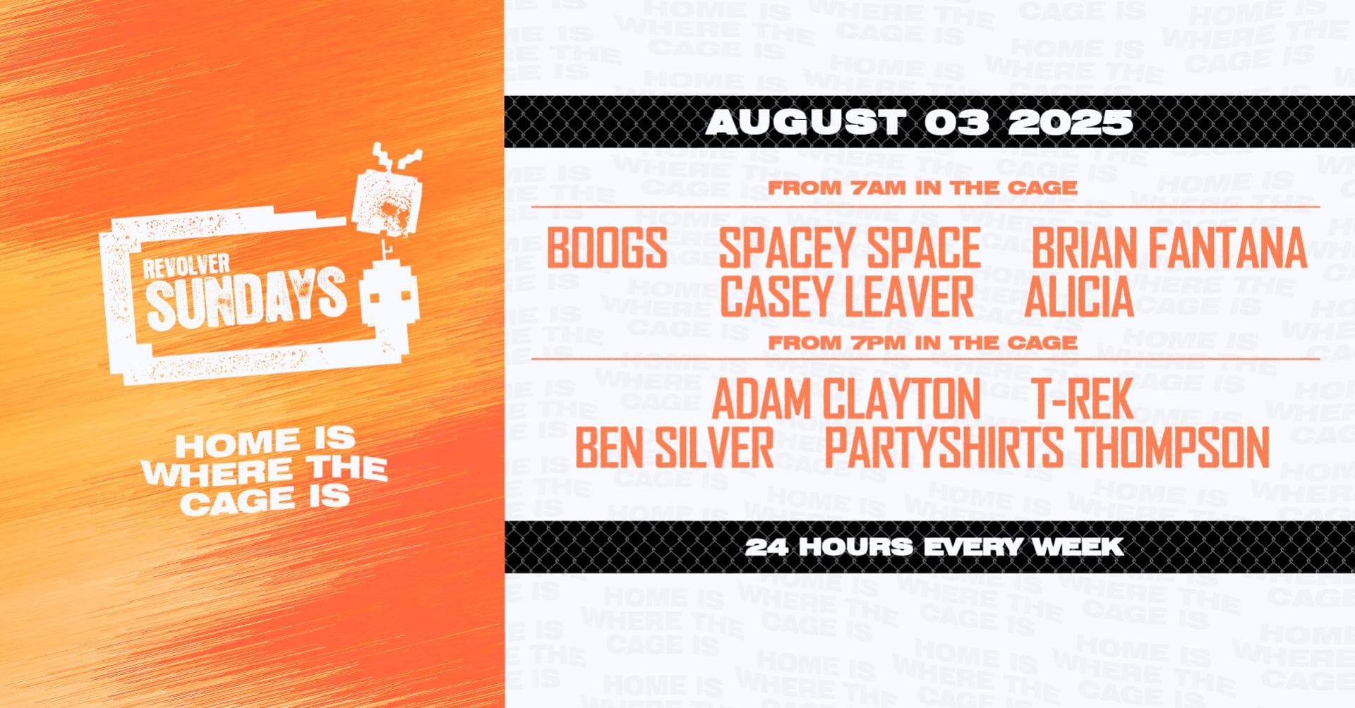 Revolver Sundays, an all day electric disco party is one of the world's most unique clubbing experiences - tight like family, welcoming like long lost friends and moved by a ceaselessly throbbing beat provided by six of Melbourne's most revered DJ’s: Boogs, Spacey Space, T-Rek, Radiator, Silversix, Brian Fantana, Casey Leaver, plus special guests.