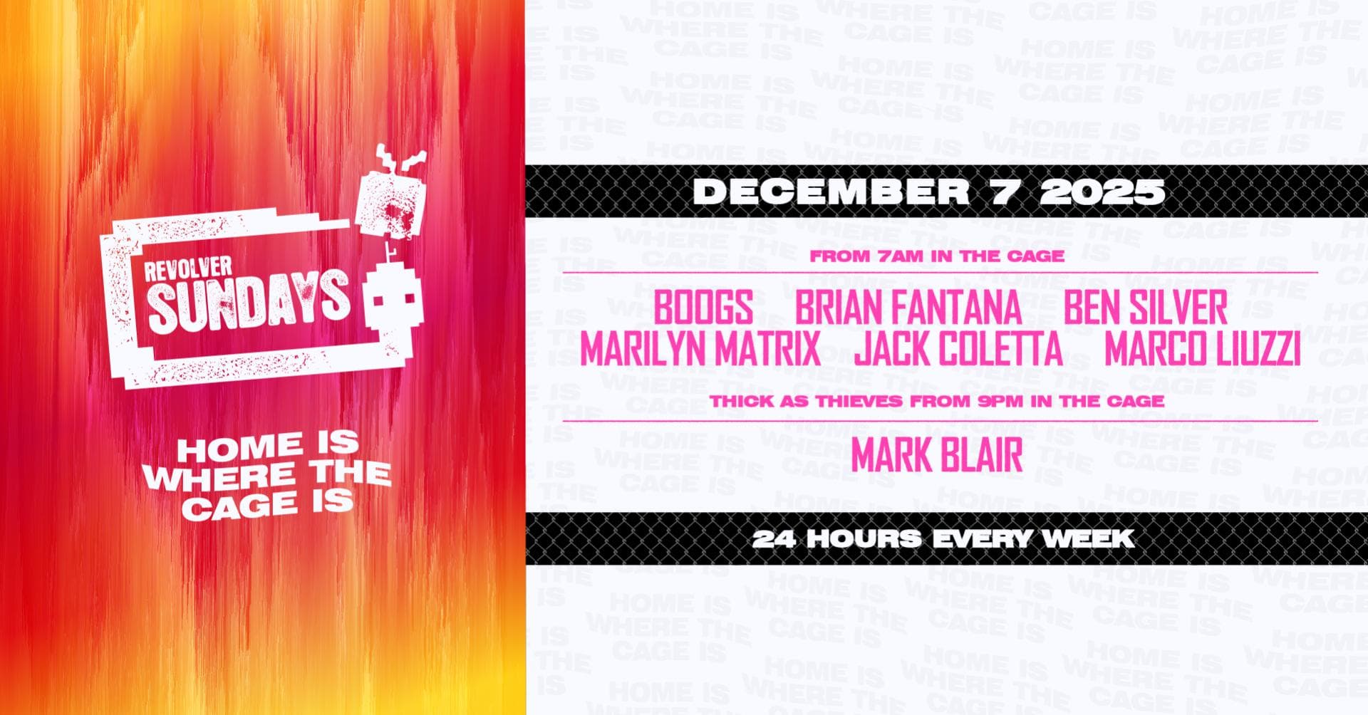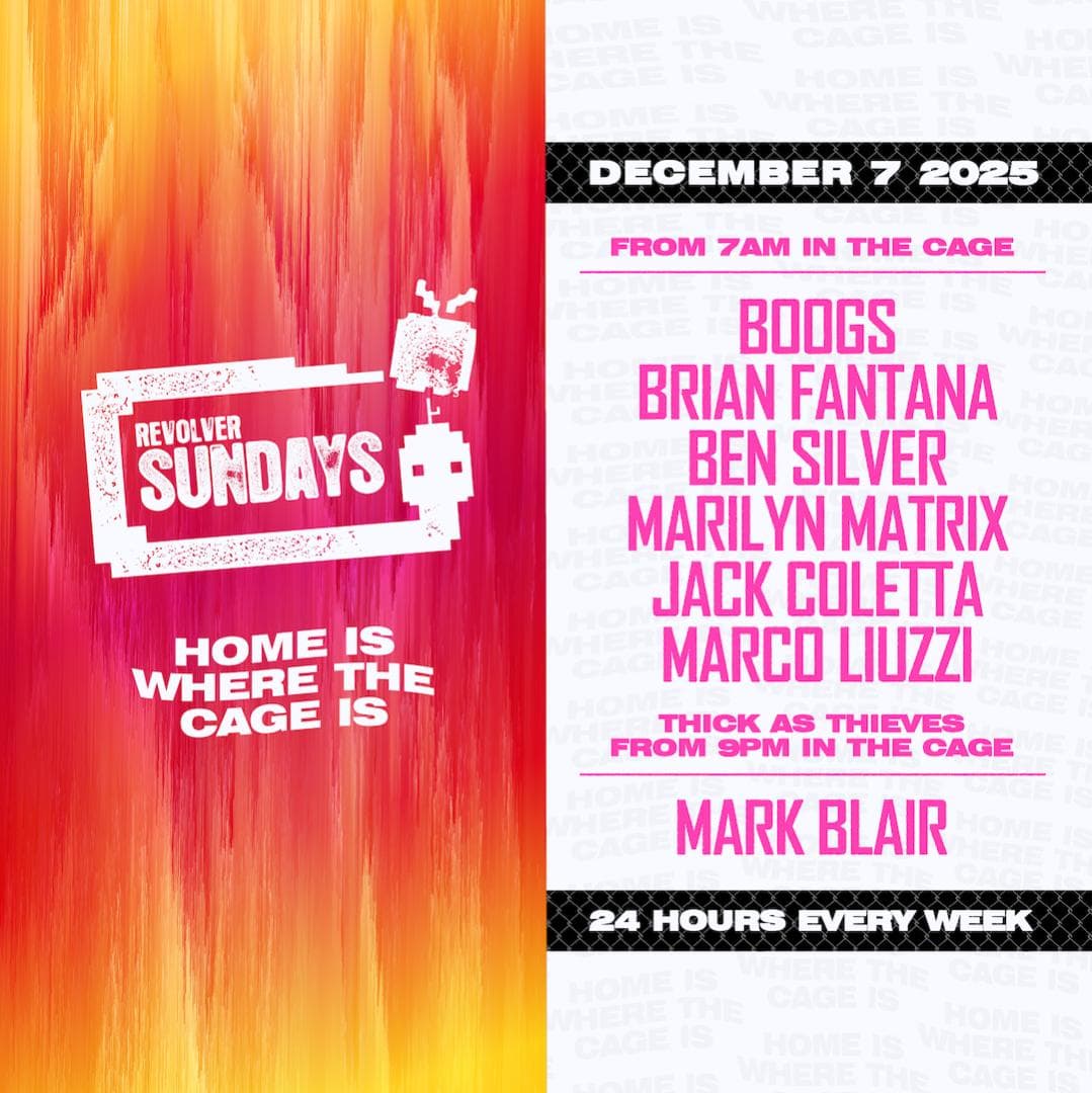 Revolver Sundays, an all day electric disco party is one of the world's most unique clubbing experiences - tight like family, welcoming like long lost friends and moved by a ceaselessly throbbing beat provided by six of Melbourne's most revered DJ’s: Boogs, Spacey Space, T-Rek, Radiator, Silversix, Brian Fantana, Casey Leaver, plus special guests.
