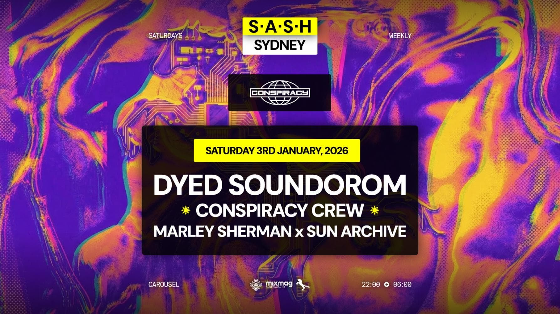 ★ S.A.S.H Sydney ★ Dyed Soundorom ★ Saturday 3rd January ★